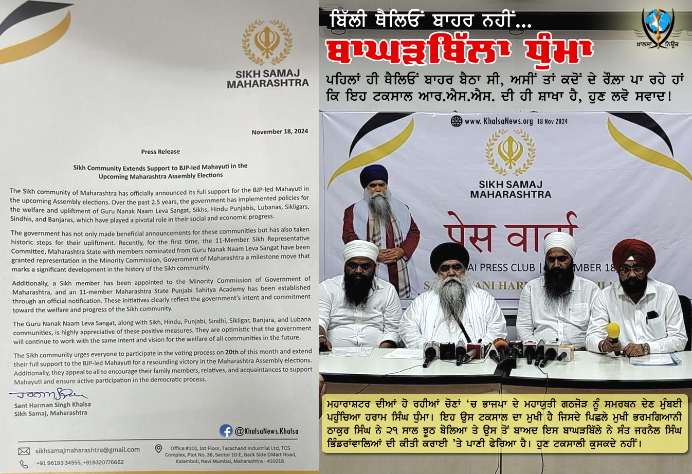 #ਮਹਾਰਾਸ਼ਟਰ ਦੀਆਂ ਹੋ ਰਹੀਆਂ ਚੋਣਾਂ ‘ਚ ਭਾਜਪਾ ਦੇ ਮਹਾਯੁਤੀ ਗਠਜੋੜ ਨੂੰ ਸਮਰਥਨ ਦੇਣ
