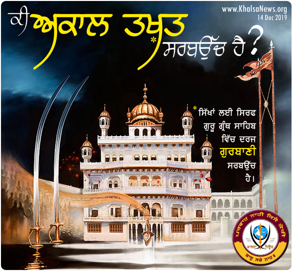 ਅਕਾਲ -ਤਖ਼ਤ ਸਰਬਉੱਚ ਹੈ। ਪਰ ਗੁਰਬਾਣੀ ਇਸ ਗਲ ਦੀ ਗਵਾਹੀ ਨਹੀਂ