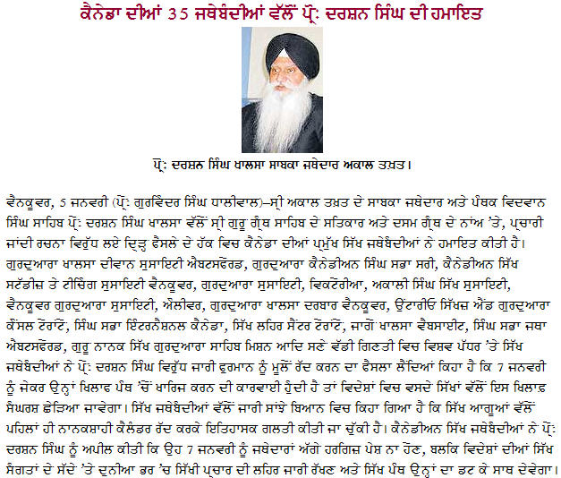 ਹੈ। ਬੀ.ਸੀ. ਦੇ ਗੁਰਦੁਆਰਾ ਪ੍ਰਬੰਧਕਾਂ ਨੇ ਪ੍ਰੋ. ਦਰਸ਼ਨ ਸਿੰਘ ਦੇ ਕੇਸ ਵੇਲੇ