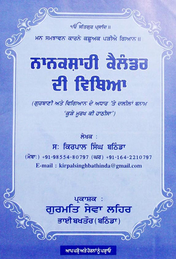 ਨੋਟ: ‘ਨਾਨਕਸ਼ਾਹੀ ਕੈਲੰਡਰ ਦੀ ਵਿਥਿਆ’ ਨਾਮੀ ਪੂਰਾ ਕਿਤਾਬਚਾ ਅਟੈਚ