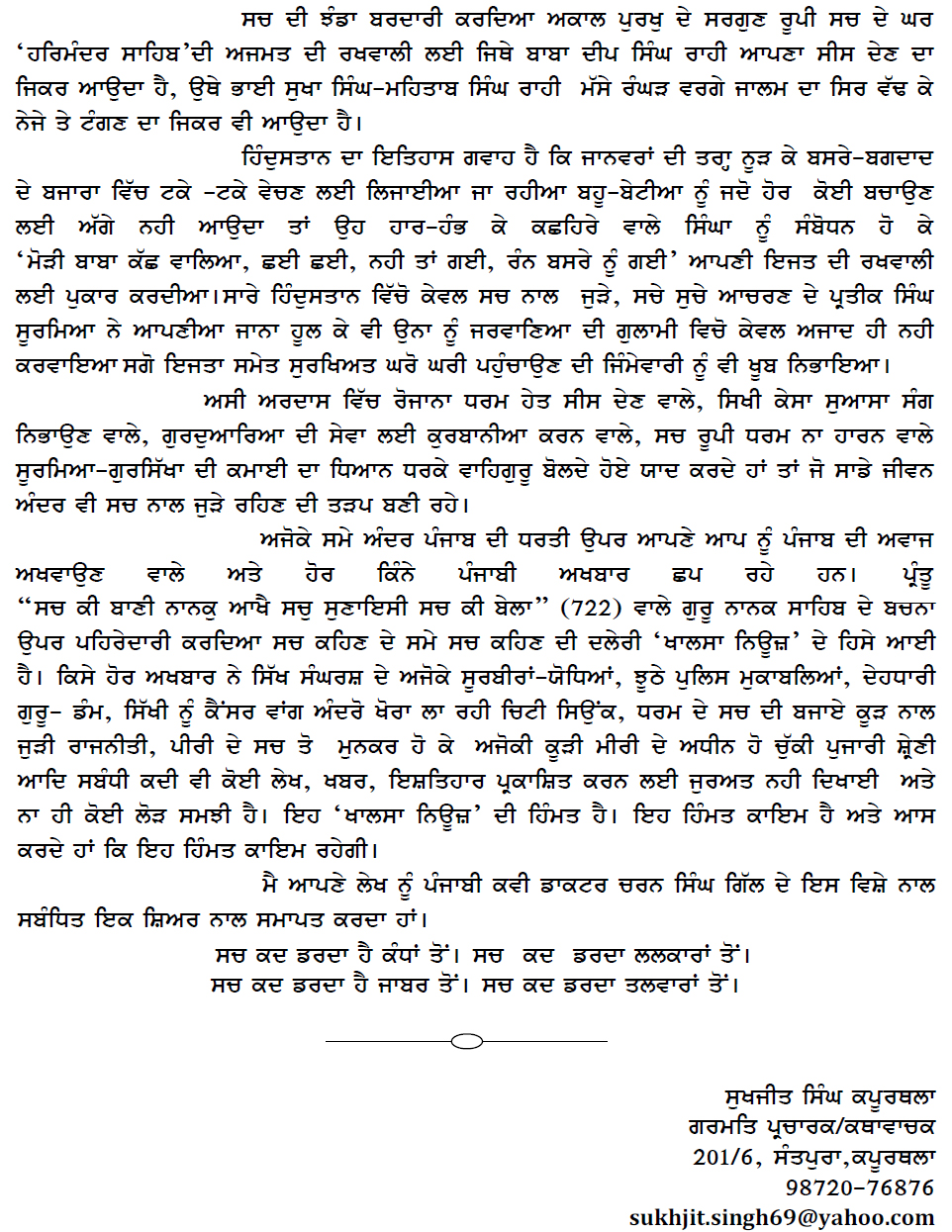 Disclaimer: Khalsanews.org does not necessarily endorse the views and opinions voiced in the news। articles। audios । videos or any other contents published on www.khalsanews.org and cannot be held responsible for their views. Read full details....