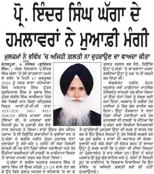 ਪ੍ਰੋ. ਇੰਦਰ ਸਿੰਘ ਘੱਗਾ ਦੇ ਹਮਲਾਵਰਾਂ ਨੇ ਮੁਆਫੀ ਮੰਗੀ