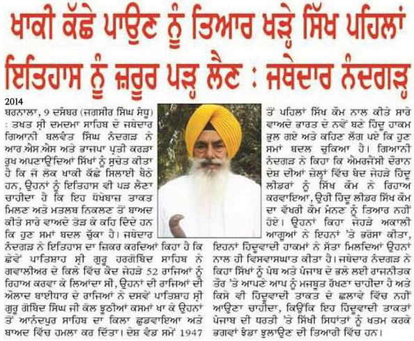 ਸਿੰਘ ਨੰਦਗੜ ਨੇ ਆਰ.ਐਸ.ਐਸ ਅਤੇ ਭਾਜਪਾ ਪ੍ਰਤੀ ਕਰੜਾ ਰੁਖ ਅਪਣਾਉਂਦਿਆਂ ਸਿੱਖਾਂ ਨੂੰ ਸੁਚੇਤ