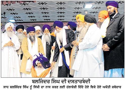 ਖਾਲਸਾ ਆਦਿ ਵੱਲੋਂ ਕੀਤੀ ਗਈ। ਦਸਤਾਰਬੰਦੀ ਉਪਰੰਤ ਨਵੇਂ ਬਣੇ ਸਾਧ ਬਲਜਿੰਦਰ ਸਿੰਘ ਨੇ