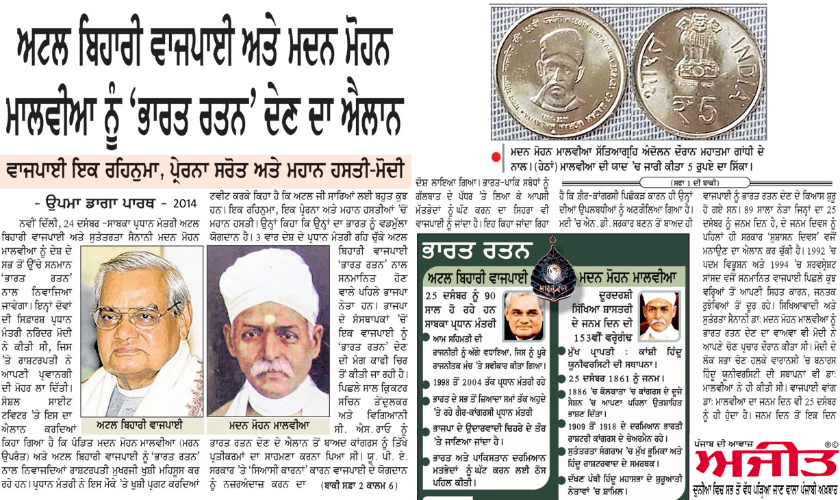 ਭਾਰਤ ਸਰਕਾਰ ਨੇ ਸ਼੍ਰੀ ਵਾਜਪਾਈ ਅਤੇ