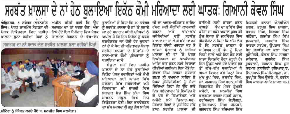 ਦੀ ਲੋੜ ਹੈ, ਜੇ ਸਭ ਦੀ ਸਹਿਮਤੀ ਨਹੀਂ ਹੈ ਤਾਂ 10 ਨਵੰਬਰ ਨੂੰ ਹੋਣ ਵਾਲੇ ਸਰਬੱਤ ਖਾਲਸਾ
