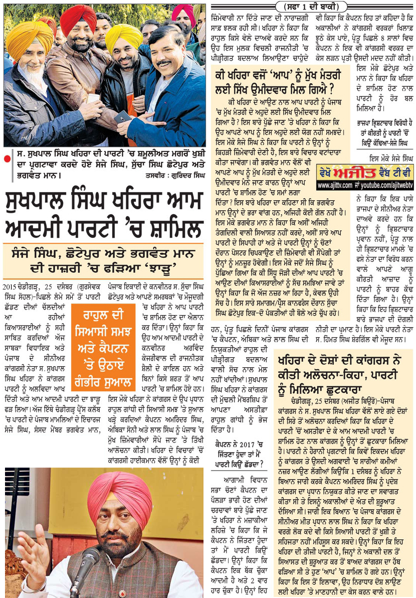 ਸੁਖਪਾਲ ਸਿੰਘ ਖਹਿਰਾ ਆਮ ਆਦਮੀ ਪਾਰਟੀ 'ਚ ਸ਼ਾਮਿਲ