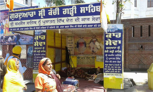 ਲਿਖਿਆ ਹੋਇਆ ਏ ਕਿ ਗੁਰਦੁਆਰਾ ਸਾਹਿਬ ਨੂੰ ਪੁਰਾਤਨ ਦਿੱਖ ਦੇਣ ਦੀ ਕਾਰ ਸੇਵਾ, ਜੋ ਸਿੱਧੇ