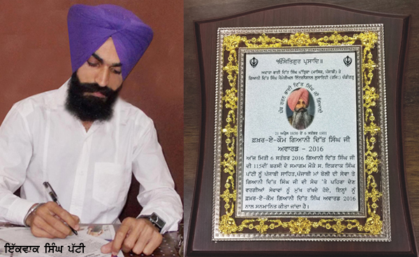 ਸਾਹਿਬ ‘ਫ਼ਖ਼ਰ-ਏ-ਕੌਮ ਗਿਆਨੀ ਦਿੱਤ ਸਿੰਘ ਐਵਾਰਡ-2016’ ਦਾ ਮਾਣ ਲੈਣ ਉਪਰੰਤ ਸ. ਪੱਟੀਦੇ
