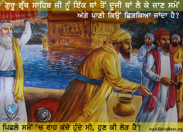 ਗੁਰੂ ਗ੍ਰੰਥ ਸਾਹਿਬ ਜੀ ਨੂੰ ਇੱਕ ਥਾਂ ਤੋਂ ਦੂਜੀ ਥਾਂ ਲੈ ਕੇ ਜਾਣ ਸਮੇਂ ਅੱਗੇ ਪਾਣੀ ਦੇ