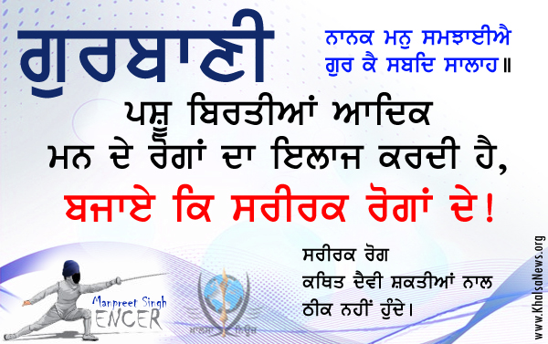 ਗੁਰਬਾਣੀ ਪਸ਼ੂ ਬਿਰਤੀਆਂ ਆਦਿਕ ਮਨ ਦੇ ਰੋਗਾਂ ਦਾ ਇਲਾਜ ਕਰਦੀ ਹੈ, ਬਜਾਏ ਸਰੀਰ ਦੇ ਰੋਗਾਂ