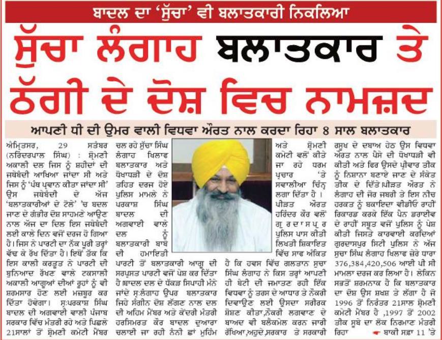 ਤੇ ਸਾਬਕਾ ਮੰਤਰੀ ਸੁੱਚਾ ਸਿੰਘ ਲੰਗਾਹ ਨੇ ਪਾਰਟੀ ਦੇ ਸਾਰੇ ਅਹੁਦਿਆਂ