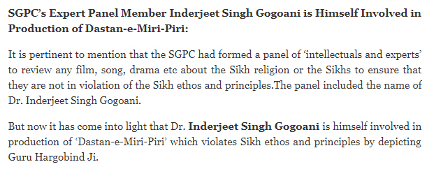 ਸੀ, ਪਰ ਸੁਖਬੀਰ ਤੇ ਇੰਦਰਜੀਤ ਗੋਗੋਆਨੀ ਤਾਂ ਗੁਰੂ ਹਰਿਗੋਬਿੰਦ ਜੀ ਦਾ ਪੂਰਾ ਪਾਤਰ ਪੇਸ਼