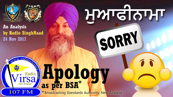 ਰੇਡੀਓ ਸਿੰਘਨਾਦ 'ਤੇ 24 ਨਵੰਬਰ 2017 ਨੂੰ ਪ੍ਰਸਾਰਿਤ ਪ੍ਰੋਗਰਾਮ