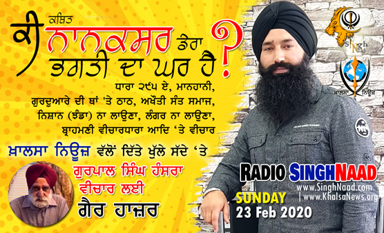 ਨਾਨਕਸਰ... ਭਗਤੀ ਦਾ ਘਰ ਹੈ?" ਵਿਸ਼ੇ ਉੱਤੇ ਖ਼ਾਲਸਾ ਨਿਊਜ਼ ਵੱਲੋਂ ਗੁਰਪਾਲ