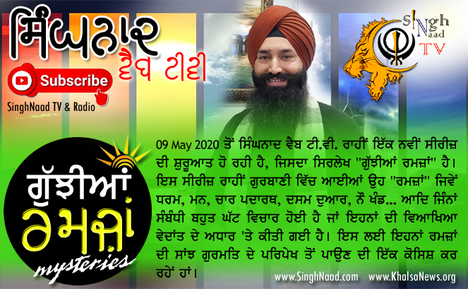 ਸਿੰਘਨਾਦ ਟੀ.ਵੀ. ਉੱਤੇ ਇਸ ਸ਼ਨਿੱਚਰਵਾਰ ਤੋਂ "ਗੁੱਝੀਆਂ ਰਮਜ਼ਾਂ" ਦੇ ਸਿਰਲੇਖ ਹੇਠ ਇੱਕ ਨਵੀਂ ਸੀਰੀਜ਼ ਸ਼ੁਰੂ