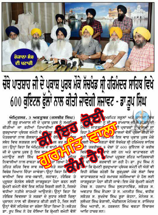 ਭਲਿਓ ਫੁੱਲਾਂ ਦੀ ਸਜਾਵਟ ਨਾਲ ਸਿੱਖੀ ਦੇ ਵੇੜ੍ਹੇ ਵਿੱਚ ਕਿਹੜੀ ਜਾਗ੍ਰਤੀ ਆਉਣੀ ਹੈ? … ੬੦੦ ਕੁਇੰਟਲ ਫੁੱਲਾਂ ਦੀ ਸਜਾਵਟ ਦੀ ਥਾਂ 'ਤੇ, ਸੰਗਤ ਦੇ ਸਾਹਮਣੇ ਨਿਰੋਲ ਗੁਰਬਾਣੀ ਦਾ ਸੱਚ ਰੱਖੋ, ਜਿਸ ਨਾਲ ਆਉਣ ਵਾਲੀ ਪੀੜ੍ਹੀ ਜਾਗ੍ਰਤ ਹੋ ਸਕੇ।