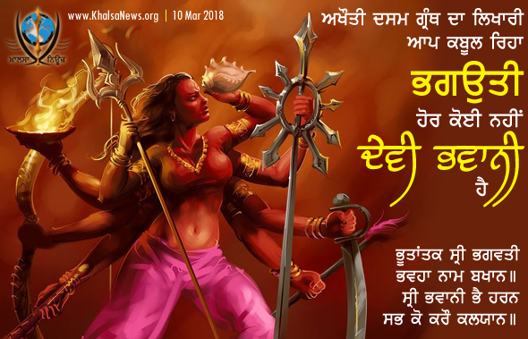 ਅਖੌਤੀ ਦਸਮ ਗ੍ਰੰਥ ਦਾ ਲਿਖਾਰੀ ਆਪ ਕਬੂਲ ਰਿਹਾ "ਭਗਉਤੀ" ਹੋਰ ਕੋਈ ਨਹੀਂ "ਦੇਵੀ ਭਵਾਨੀ" ਹੈ