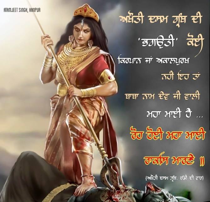 ਓਇ ਭਲਿਓ ਅੱਖਾਂ ਖੋਲੋ ਤੇ ਪੜ੍ਹੋ ਅਖੌਤੀ ਦਸਮ ਗ੍ਰੰਥ, ਇਹ 'ਭਗਉਤੀ' ਕਿਰਪਾਨ ਜਾਂ ਅਕਾਲ ਪੁਰਖ ਨਹੀਂ, ਇਹ ਤਾ ਬਾਬਾ ਨਾਮ ਦੇਵ ਜੀ ਵਾਲੀ "ਮਹਾ ਮਾਈ" ਹੈ ...।