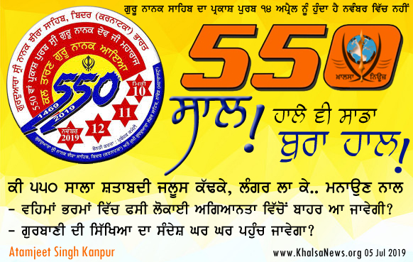 ਜੀਵਨ ਵਿਚ ਅਪਣਾ ਕੇ ਅਪਣਾ ਜੀਵਨ ਸਫ਼ਲਾ ਕਰ ਸਕਣ ਤਾਂ ਹੀ ਇਹ ਸਾਡਾ ੫੫੦ ਸਾਲਾ ਮਨਾਇਆ