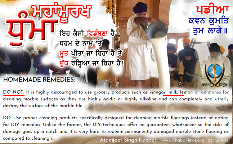 ਅਤੇ ਦੁੱਧ ਨੂੰ ਗੁਰਬਾਣੀ ਵਿੱਚ ਅਮ੍ਰਿਤ ਕਿਹਾ ਹੈ ਤੇ ਆਹ ਬੇਵਕੂਫ ਲਾਣਾ ਫਰਸ਼ ਧੋ-ਧੋ ਕੇ