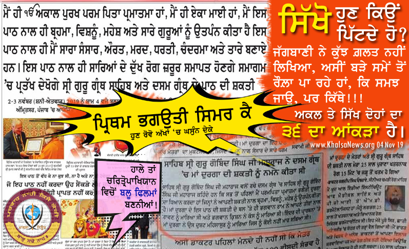 ਜੱਗਬਾਣੀ ਨੇ ਕੁੱਝ ਗ਼ਲਤ ਨਹੀਂ ਲਿਖਿਆ, ਜਦੋਂ ਅਸੀਂ ਸੰਘ ਪਾੜ ਪਾੜ ਆਖ ਰਹੇ ਹਾਂ ਕਿ ਅਖੌਤੀ ਦਸਮ ਗ੍ਰੰਥ ਗੁਰੂ ਦਾ ਲਿਖਿਆ ਨਹੀਂ, ਹੁਣ ਭੁਗਤੋ !