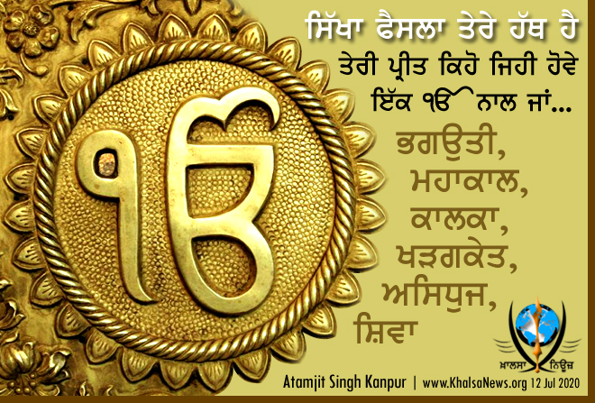 ਇਕ {ੴ} ਨਾਲ ਜਾਂ ਹੋਰਾਂ ਨਾਲ {ਭਗਉਤੀ, ਮਹਾਕਾਲ, ਕਾਲਕਾ, ਖੜਗਕੇਤ, ਅਸਿਧੁਜ, ਸ਼ਿਵਾ }