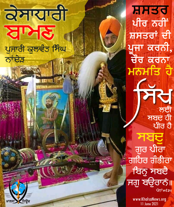 ਪਰ ਸਿੱਖਾਂ ਵਿੱਚ ਬ੍ਰਾਹਮਣੀ ਕਰਮਕਾਂਡ ਨਿਭਾਉਣ ਵਾਲਿਆਂ ਨੇ ਸਸ਼ਤ੍ਰਾਂ ਨੂੰ ਹੀ ਸਾਡੇ ਪੀਰ
