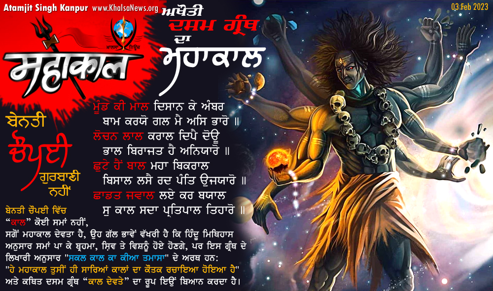 ਭਾਈ ਜੀ ਬੇਨਤੀ ਚੌਪਈ ਵਿਚ 'ਕਾਲ' ਕੋਈ ਸਮਾਂ ਨਹੀਂ, ਸਗੋਂ ਮਹਾਕਾਲ ਦੇਵਤਾ ਹੈ, ਉਹ ਗੱਲ