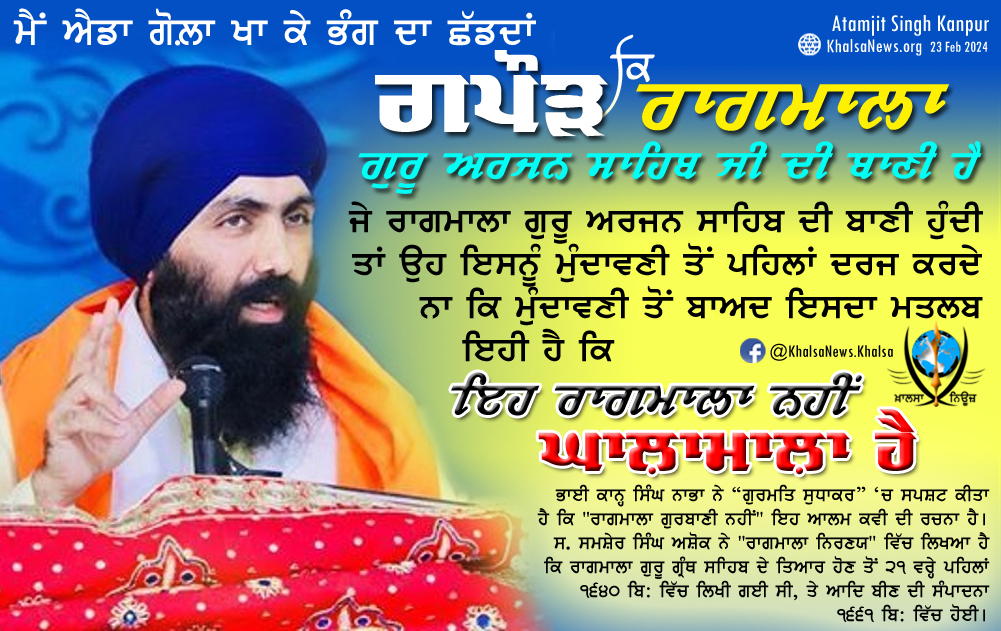 ਕੀਤਾ ਹੈ ਕਿ "ਰਾਗਮਾਲਾ ਗੁਰਬਾਣੀ ਨਹੀਂ" ਇਹ ਆਿਲਮ