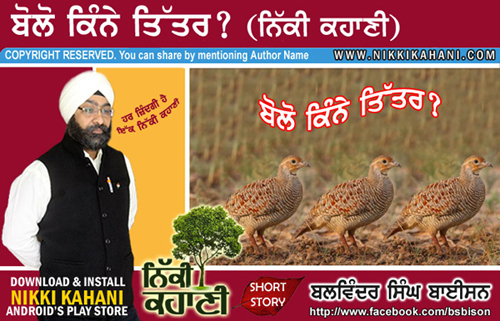 ਤਿੱਤਰ ! ਬੋਲੋ ਕਿੰਨੇ ਤਿੱਤਰ ? (ਹਸਦਿਆਂ ਹੋਇਆ ਸਤਨਾਮ ਸਿੰਘ ਨੇ ਪੁੱਛਿਆ)