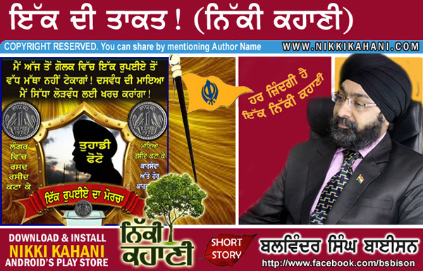 ਕਹਿੰਦੇ ਹੋ ਕੀ "ਇੱਕ ਰੁਪਇਆ" ਬਹੁਤ ਹੀ ਘੱਟ ਹੈ ਤੇ ਸਾਡਾ ਕਹਿਣਾ ਹੈ ਕੀ ਜੇਕਰ ਗੁਰੂ