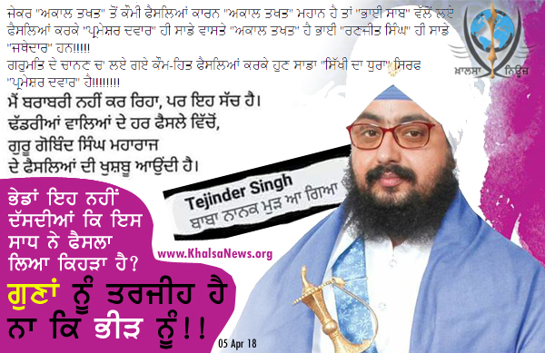 ਵੱਲੋਂ ਲਏ ਫੈਸਲਿਆਂ ਕਰਕੇ "ਪ੍ਰਮੇਸ਼ਰ ਦਵਾਰ" ਹੀ ਸਾਡੇ ਵਾਸਤੇ "ਅਕਾਲ ਤਖਤ" ਹੈ ਭਾਈ "ਰਣਜੀਤ