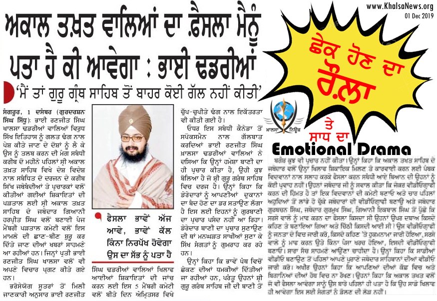 ਨੇ ਵੀ ਕੋਈ ਡਰਾਮੇਬਾਜ਼ੀ ਨਹੀਂ ਕੀਤੀ। ਅਗਲੇ ਛੇਕੇ ਗਏ ਤਾਂ ਵੀ ਉਹ ਚੜ੍ਹਦੀਕਲਾ
