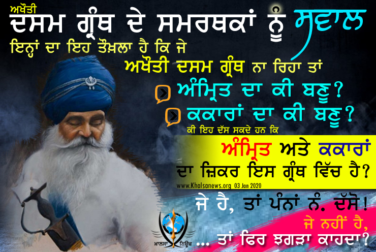 ਅਖੌਤੀ ਦਸਮ ਗ੍ਰੰਥ ਦੇ ਸਮਰਥਕਾਂ ਨੂੰ ਸਵਾਲ