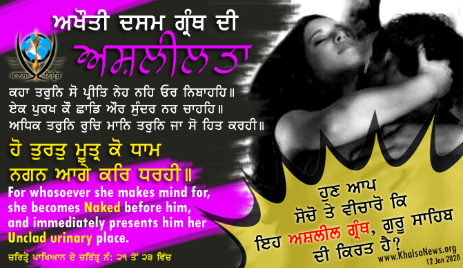 ਆਪ ਸੋਚੋ ਤੇ ਵੀਚਾਰੋ ਕਿ ਇਹ ਅਸ਼ਲੀਲ ਗ੍ਰੰਥ ਗੁਰੂ ਸਾਹਿਬ ਦੀ