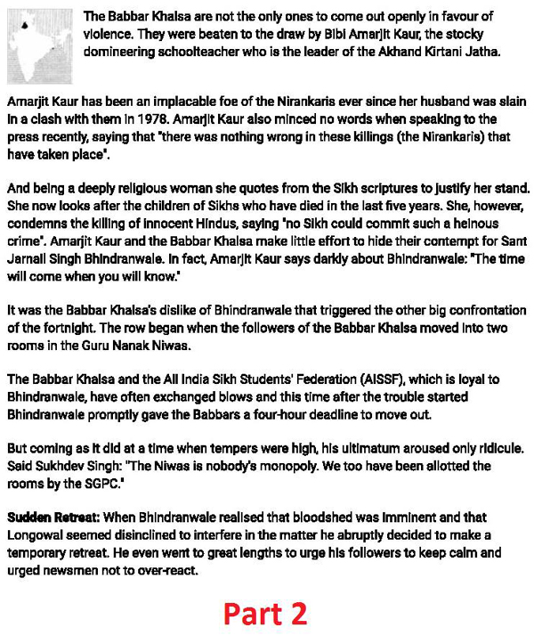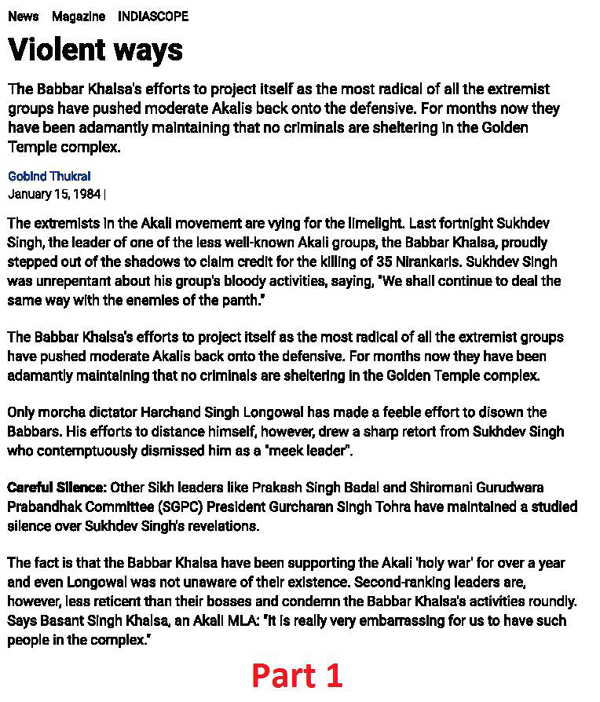 1984 ਵੇਲੇ ਬੱਬਰਾਂ ਅਤੇ ਟਕਸਾਲੀਆਂ ਵਿੱਚ ਹੋਈ ਝੜਪ ਦੀ ਰਿਪੋਰਟ