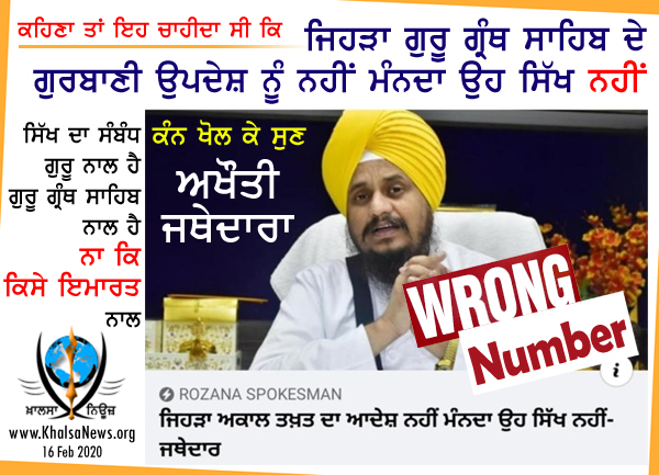 ਗ੍ਰੰਥ ਸਾਹਿਬ ਨਾਲ ਹੈ, ਨਾ ਕਿ ਕਿਸੇ ਇਮਾਰਤ ਨਾਲ। ਇਸ ਇਆਣੇ ਅਖੌਤੀ ਜਥੇਦਾਰ