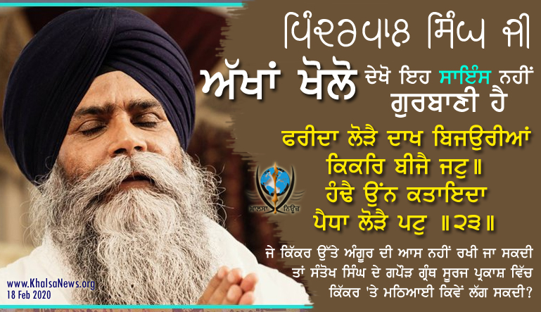 ਜੇ ਕਿੱਕਰ ਦੇ ਦਰਖ਼ਤ ਉੱਤੇ ਅੰਗੂਰ ਦੀ ਆਸ ਹੀ ਰੱਖਣ ਵਾਲੇ ਨੂੰ ਸ਼ੇਖ ਫਰੀਦ ਜੀ ਇਹ ਕਹਿ ਸਕਦੇ ਹਨ, ਤਾਂ ਪਿੰਦਰਪਾਲ ਸਿੰਘ ਜੀ ਸੰਤੋਖ ਸਿੰਘ ਦੇ ਗਪੌੜ ਗ੍ਰੰਥ ਸੂਰਜ ਪ੍ਰਕਾਸ਼ ਵਿੱਚ ਕਿੱਕਰ 'ਤੇ ਮਠਿਆਈ ਕਿਵੇਂ ਲੱਗ ਸਕਦੀ? ਇਹ ਤਾਂ ਸਾਇੰਸ ਨਹੀਂ, ਇਹ ਤਾਂ ਗੁਰਬਾਣੀ ਵਿੱਚ ਦਰਜ ਹੈ! ਹੁਣ ਦੱਸੋ ਭਾਈ ਕੀ ਕਰਨਾ?