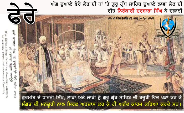 ਤਰੀਕਾ ਲਭਿਆ। ਉਸ ਨੇ ਅੱਗ ਦੁਆਲੇ ਫੇਰੇ ਲੈਣ ਦੀ ਥਾਂ ਗੁਰੂ ਗ੍ਰੰਥ ਸਾਹਿਬ ਦੁਆਲੇ ਲਾਵਾਂ