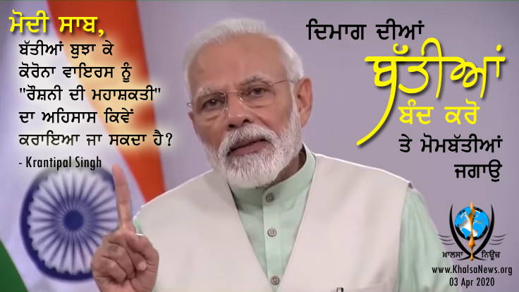 ਘੰਟੀਆਂ ਖੜਕਾ ਕੇ, ਮੋਮਬੱਤੀਆਂ, ਟੋਰਚਾਂ, ਮੋਬਾਇਲ Phones ਦੀਆਂ Flashlights ਜਗਾ