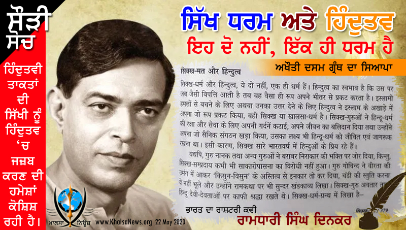"ਸਿੱਖ ਧਰਮ ਅਤੇ ਹਿੰਦੁਤਵ, ਇਹ ਦੋ ਨਹੀਂ,