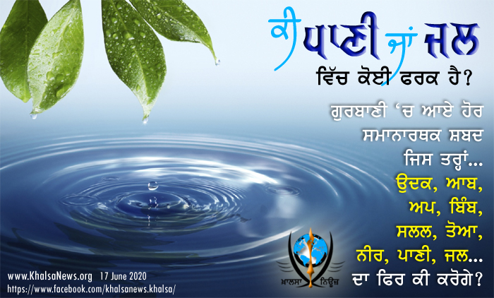 ਪਾਣੀ, ਜਲ ... ਸਾਰਿਆਂ ਦਾ ਇੱਕੋ ਮਤਲਬ ਹੈ ਗੁਰਬਾਣੀ ਵਿੱਚ।