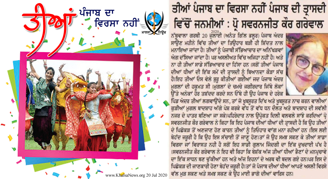 ਤੀਆਂ ਪੰਜਾਬ ਦਾ ਵਿਰਸਾ ਨਹੀਂ, ਪੰਜਾਬ ਦੀ ਤ੍ਰਾਸਦੀ ਵਿੱਚੋਂ ਜਨਮਿਆ