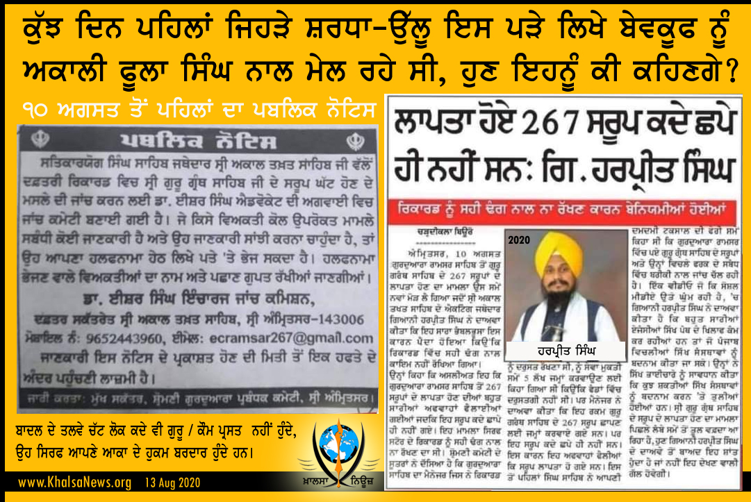 💥 ਕੁੱਝ ਦਿਨ ਪਹਿਲਾਂ ਜਿਹੜੇ ਸ਼ਰਧਾ-ਉੱਲੂ ਇਸ ਪੜੇ ਲਿਖੇ ਬੇਵਕੂਫ ਹਰਪ੍ਰੀਤ ਸਿੰਘ ਨੂੰ ਅਕਾਲੀ ਫੂਲਾ ਸਿੰਘ ਨਾਲ ਮੇਲ ਰਹੇ ਸੀ, ਹੁਣ ਇਹਨੂੰ ਕੀ ਕਹਿਣਗੇ?