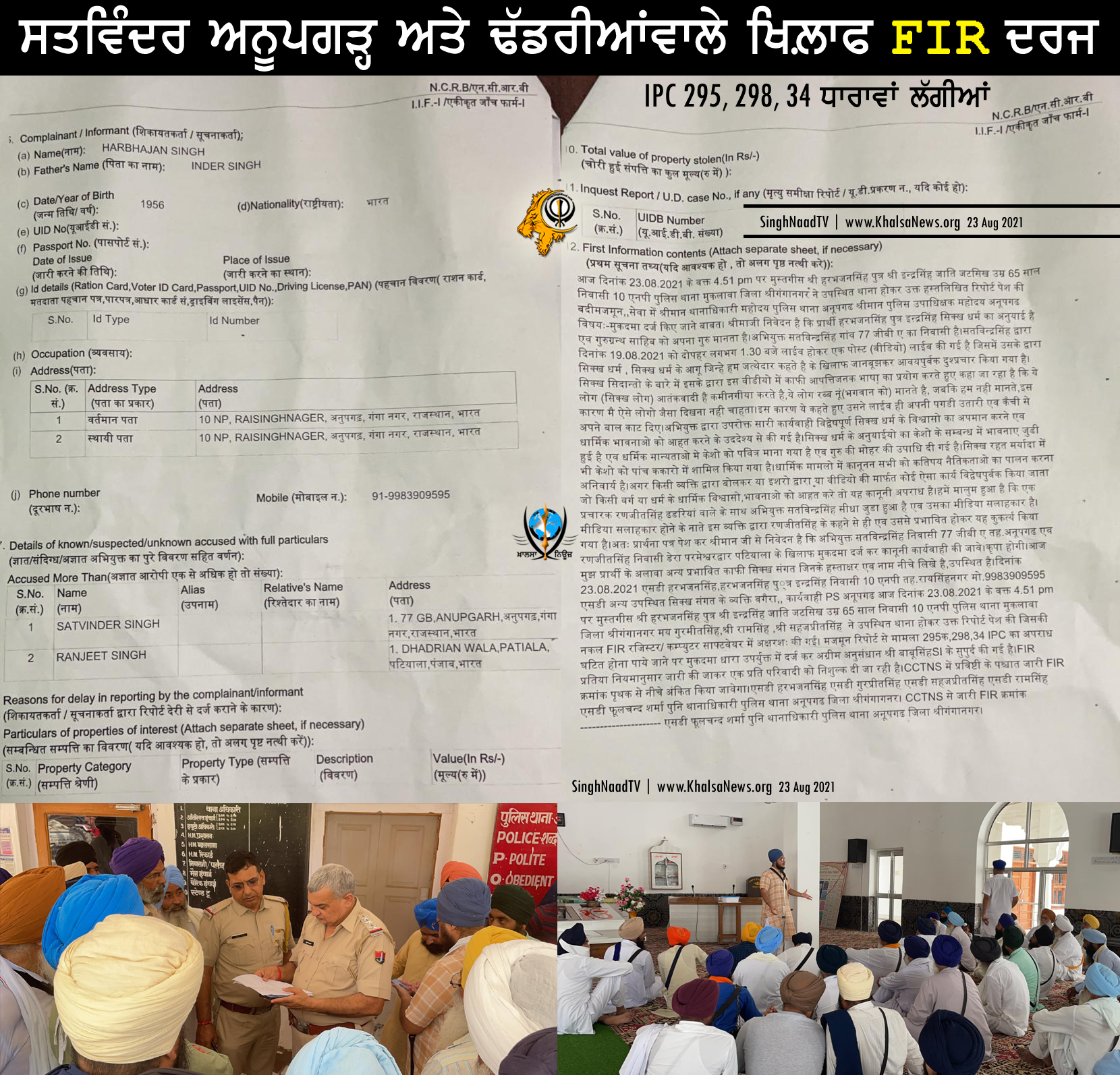 #KhalsaNews #Satvinder #Anoopgarh #Dhadrianwala #FIR