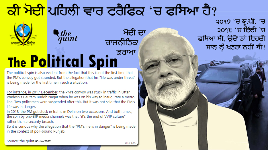 ਪ੍ਰਧਾਨਮੰਤ੍ਰੀ ਦੋ ਵਾਰੀ ਟਰੈਫਿਕ 'ਚ ਫਸਿਆ, ਤੇ ਦੋਵੇਂ ਵਾਰੀ ਗੋਦੀ ਮੀਡੀਆ ਨੇ ਇਹ ਕਹਿ