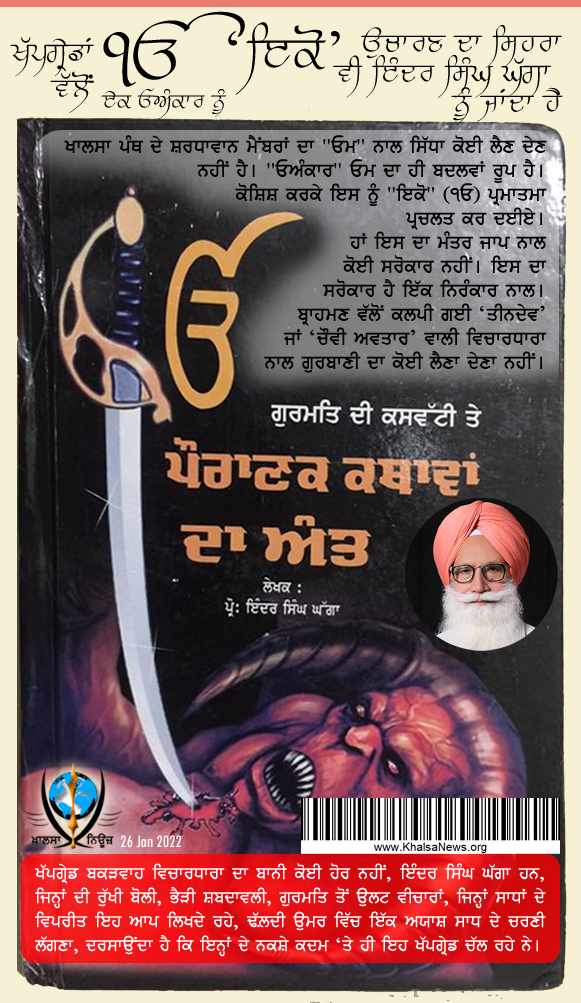 ਹੈ। ਇਸ ''ਓਅੰਕਾਰ'' ਨੂੰ ਉਤਾਰ ਕੇ ''ਇਕੋ'' ਨੂੰ ਅਪਣਾ ਕੇ ਹੀ ਸਿੱਖ ਪੰਥ ਵੈਦਿਕ