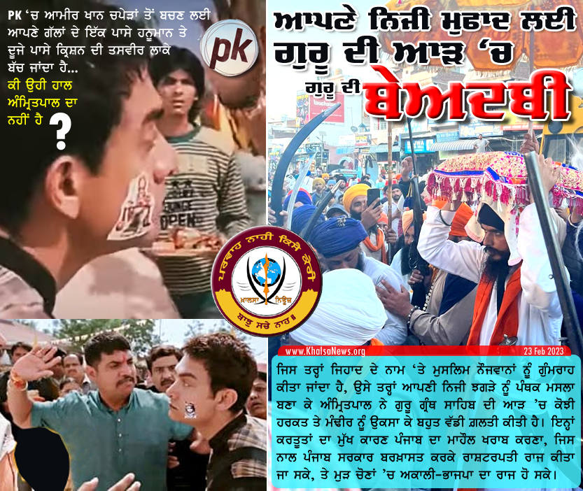 ਉਸੇ ਤਰ੍ਹਾਂ ਆਪਣੀ ਨਿਜੀ ਝਗੜੇ ਨੂੰ ਪੰਥਕ ਮਸਲਾ ਬਣਾ ਕੇ ਅੰਮ੍ਰਿਤਪਾਲ ਨੇ ਗੁਰੂ ਗ੍ਰੰਥ