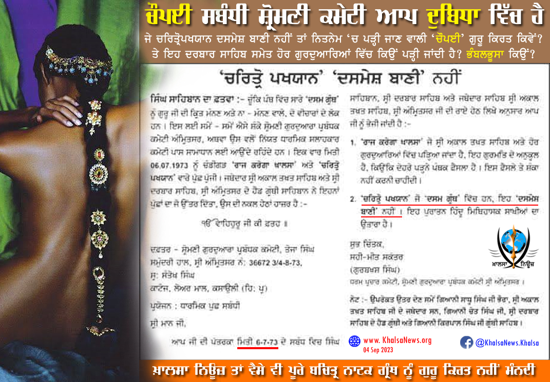 ✅ਖ਼ਾਲਸਾ ਨਿਊਜ਼ ਤਾਂ ਵੈਸੇ ਵੀ ਪੂਰੇ ਬਚਿਤ੍ਰ ਨਾਟਕ ਗ੍ਰੰਥ ਨੂੰ ਗੁਰੂ ਕਿਰਤ ਨਹੀਂ ਮੰਨਦੀ,